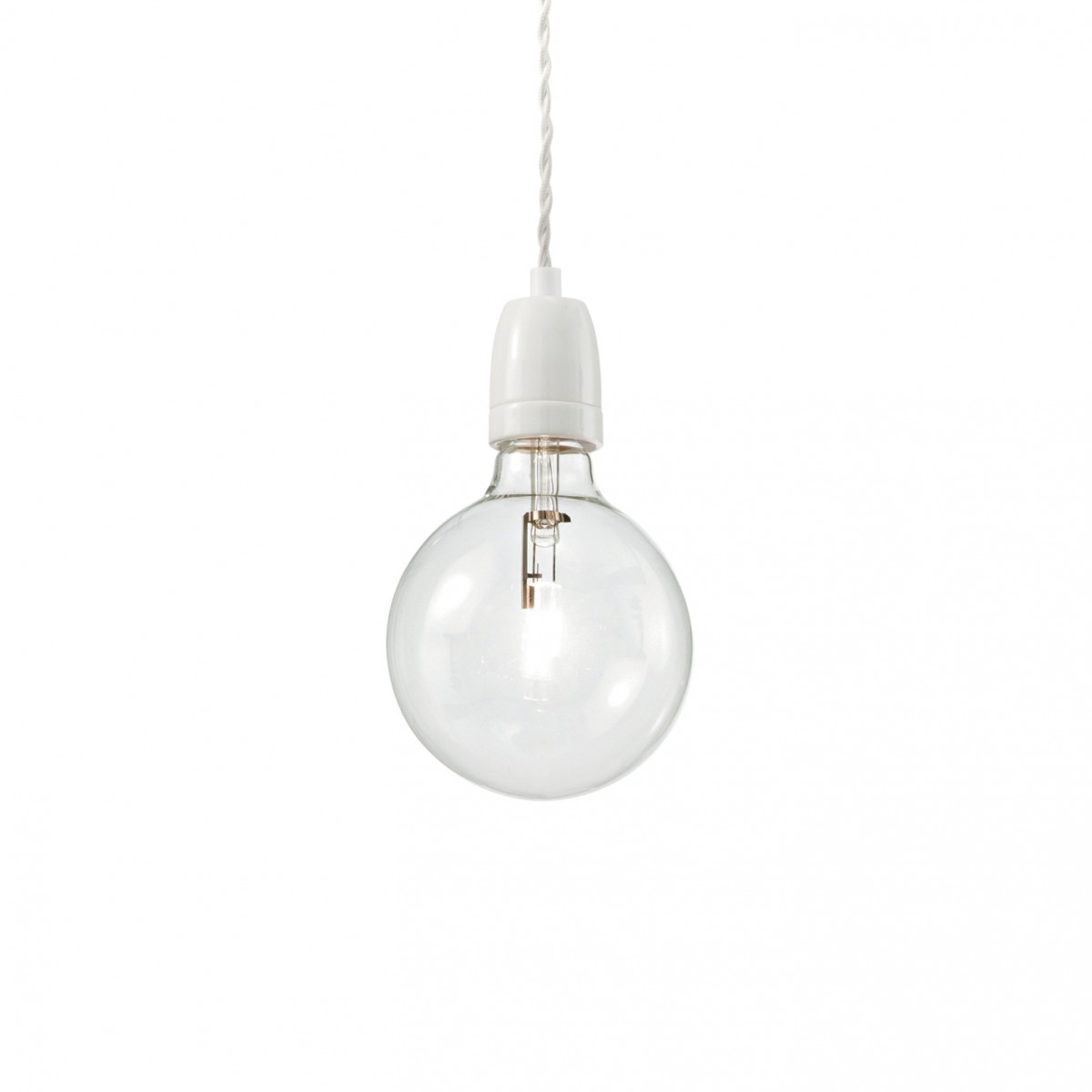 Rozeta a lesklá keramická objímka. Kábel opletený tkaninou.
