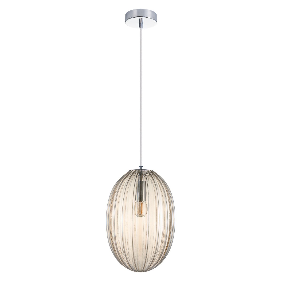 Lustre zo série Parla sú veľmi osobité kúsky z dielne spoločnosti Italux. Svietidlo nápadne pripomínajú lampión, voľne sa vznášajúce uprostred vašej obývačky, či jedálne. Rebrovanie pozdĺž celej lampy je inšpirované tvarom trupu historických vzducholodí. Masívne sklo v tóne koňaku, z ktorého je celé telo svetla, dopĺňajú skryté chrómové komponenty, ktoré zaručujú kvalitu prevedenia. Výška lampy je 351 mm pri priemere 200 mm. Pre výber z väčšieho množstva farieb v dvoch veľkostiach si posvieťte na našu ponuku.