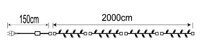 - svetelná reťaz vhodná na vonkajšie použitie - stupeň ochrany IP44 - napájanie 230V - 200x LED 14W - svetlo studené biele - 5 segmentov - dĺžka 20 m - kábel čierny, dĺžka prívodného kábla 1,5…