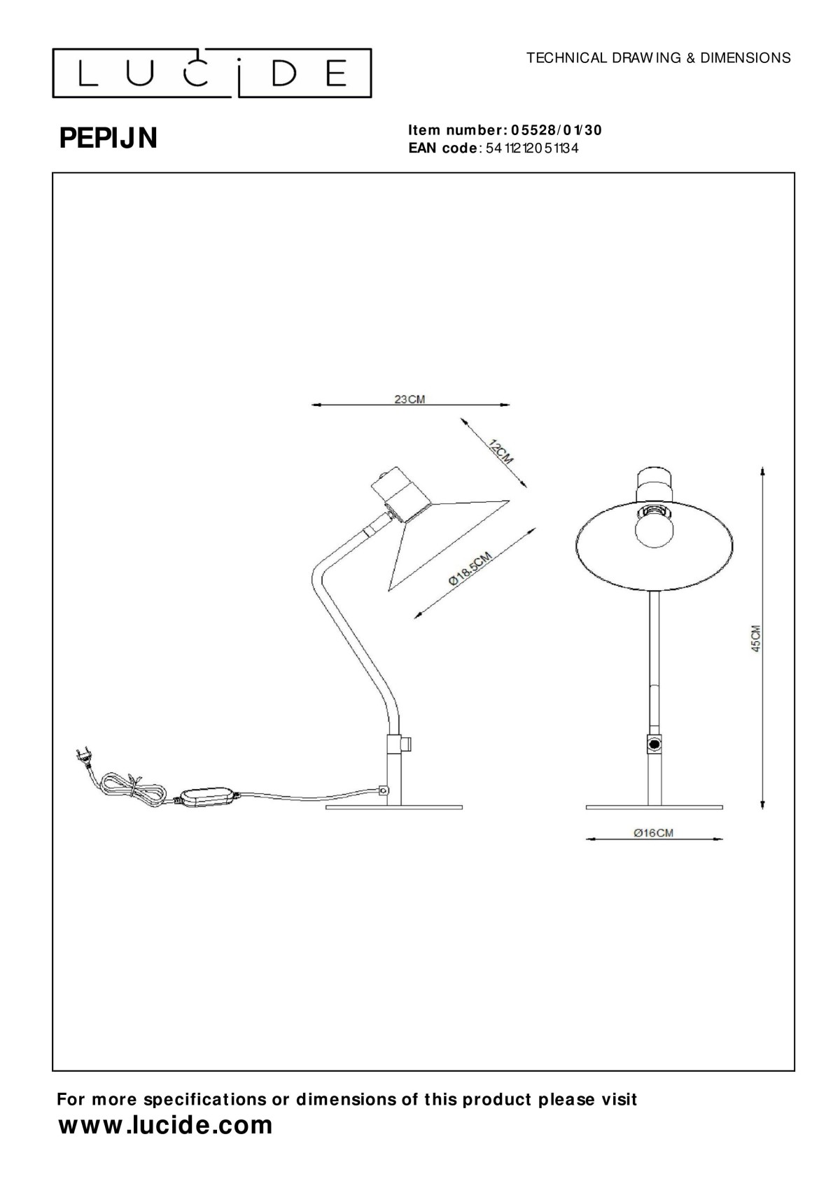 Lucide 05528/01/30 stolná lampička Pepijn 1x40W | E14