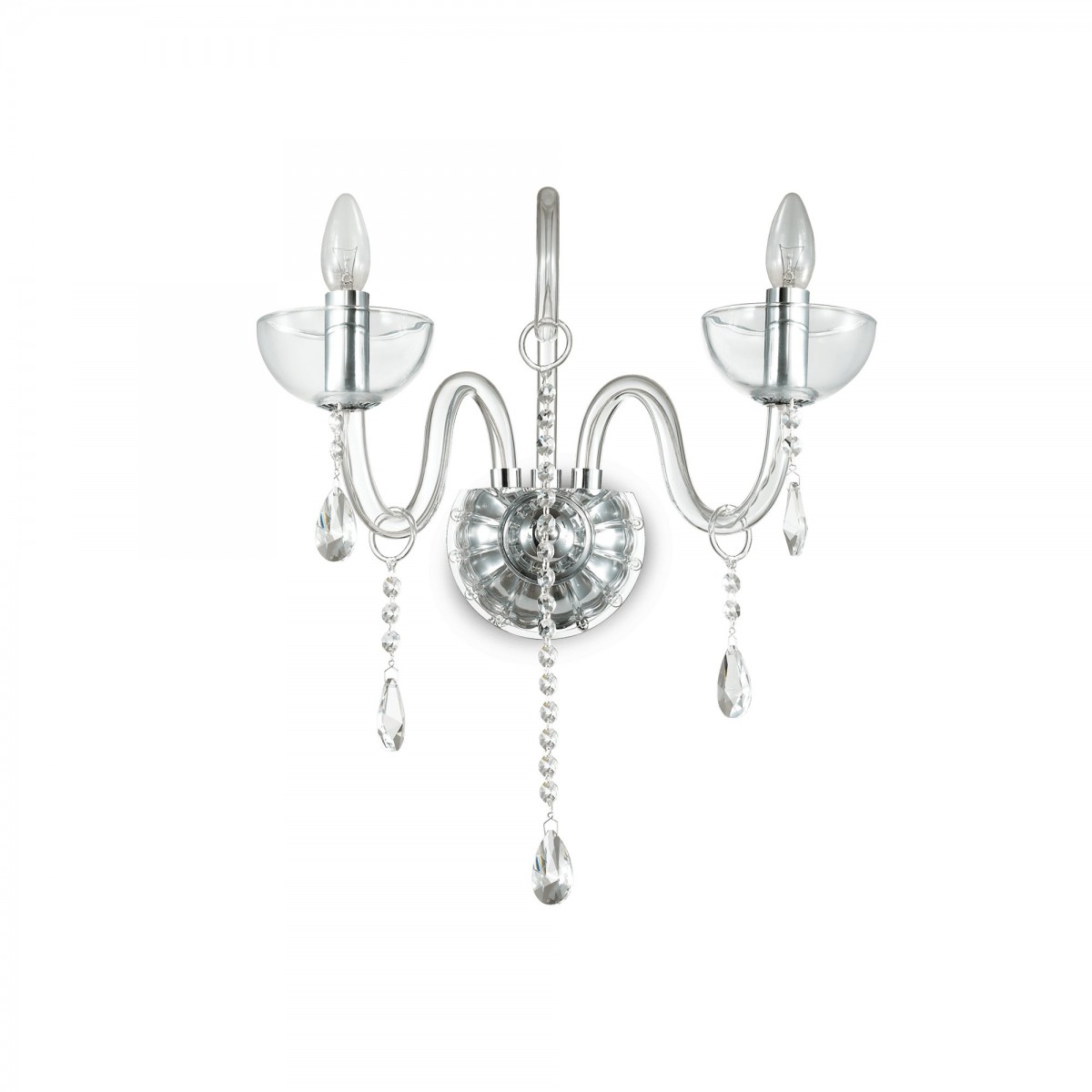 Celý článokModerné nástenné svietidlo s nádychom romantiky je z ručne fúkaného skla s chrómovým rámom. Ramená sú zdobené záveskami z brúsených krištáľov a závesný reťaz je krytý zamatom.