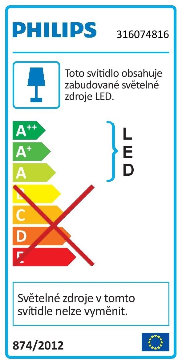 Technológia osvetlenia pomocou diód LED v svietidlách spoločnosti Philips je energeticky veľmi úsporná (7,5 W modul 350 lúmenov). Vďaka tomu každé svietidlo šetrí energiu, čím pomáha zákazníkom šetriť peniaze pri účtoch za elektrinu a prispievať k ochrane životného prostredia. Ak chcete energeticky úsporné osvetlenie domácnosti, ktoré vám poskytne jasné svetlo v širokej škále moderných dizajnov, produkty LED od spoločnosti Philips sú pre vás tou správnou voľbou.