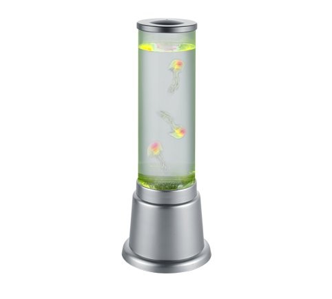 Pokiaľ hľadáte svietidlo, ktoré môžete využiť na osvetlenie priestoru aj ako dekoratívny prvok, potom je pre Vás stolné svietidlo Trio TR50701187 Jelly tou správnou voľbou. Svetlo sa totiž hodí do interiérov ako zaujímavé oživenie vďaka svojmu vzhľadu a umelým medúzam, ktoré v svietidle akoby plávajú. Zároveň poteší farebný režim svietidla v spektre RGB. Táto stolná lampa vynikne najmä ako doplnkové svietidlo v obývacej izbe, na chodbe alebo aj v detskej izbe. Základňa svietidla je vyrobená z plastu vo farbe titánu, priehľadné tienidlo je potom z akrylu.
