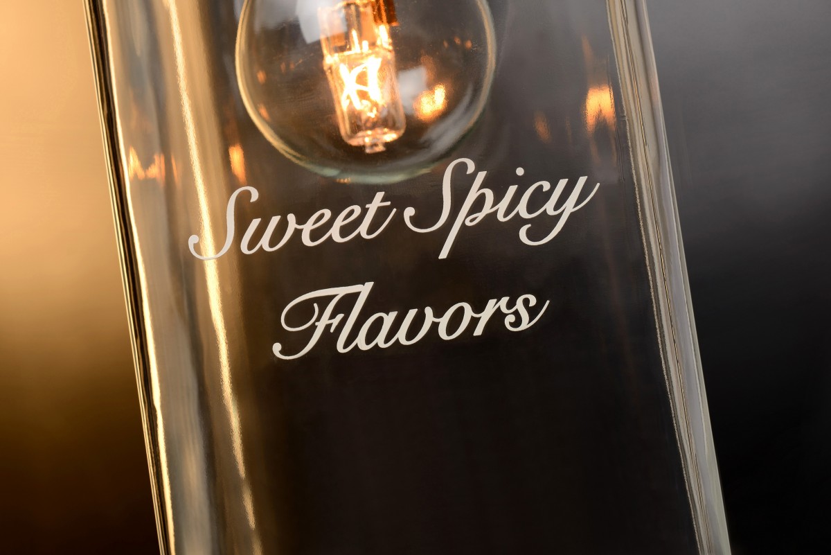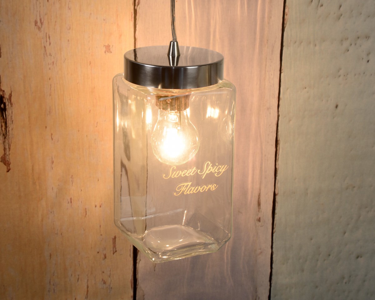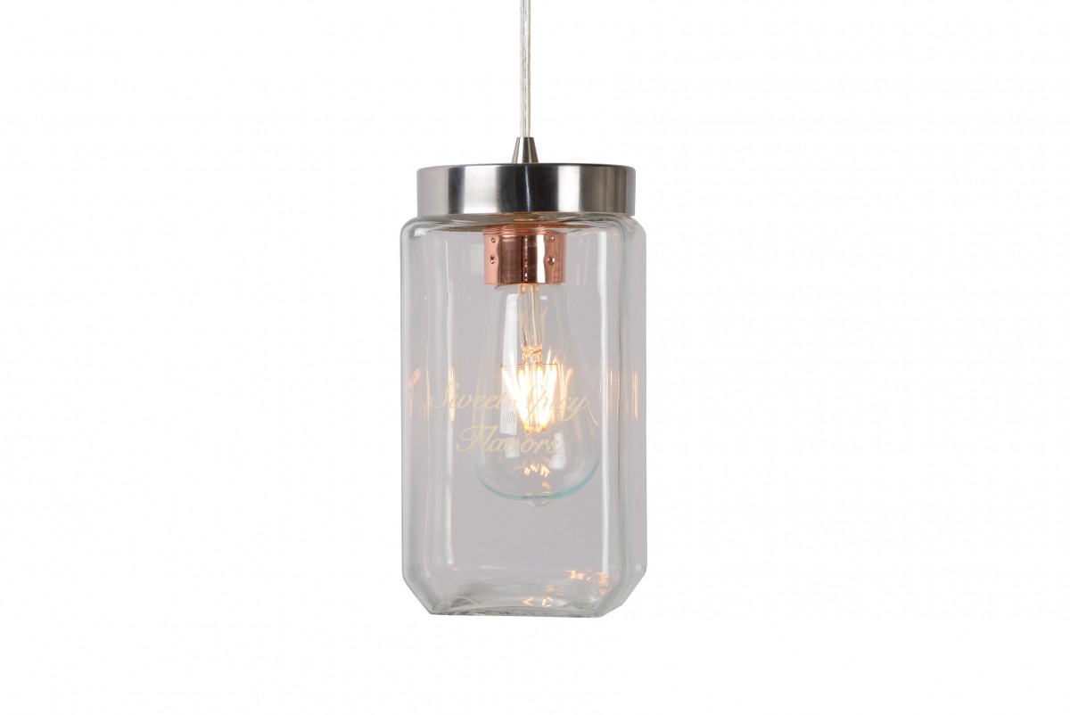 Jednoduchý, ale veľmi výrazný dizajn lustrov rôznych tvarov. Kovová pochrómovaná základňa a sklenené tienidlo s vyritým: Sweet Spicy Flavors - Sladko-pikantné príchute. Vytvára príjemnú atmosféru v…